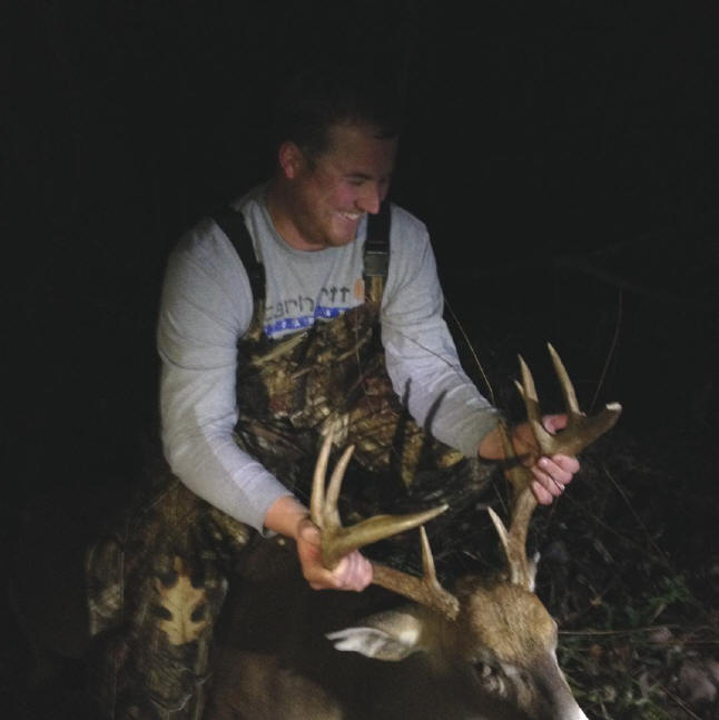 220 lb. 11 point white tail killed by Matthew Searcy in Holmes County, MS on Dec. 8th, 2013. Killed working a scrape line. 16" inside spread.